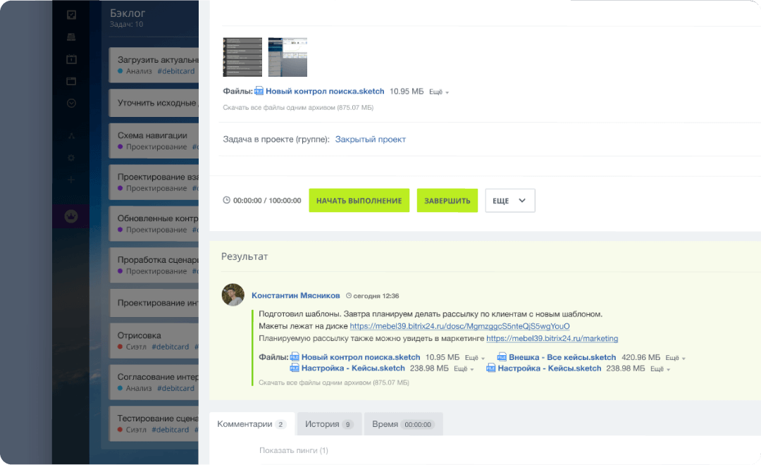 Создавайте проекты, приглашайте в них коллег, работайте вместе и двигайтесь к общей цели.