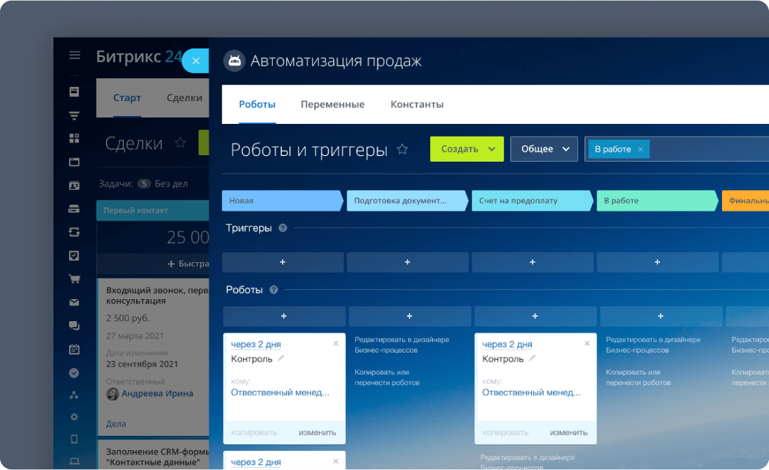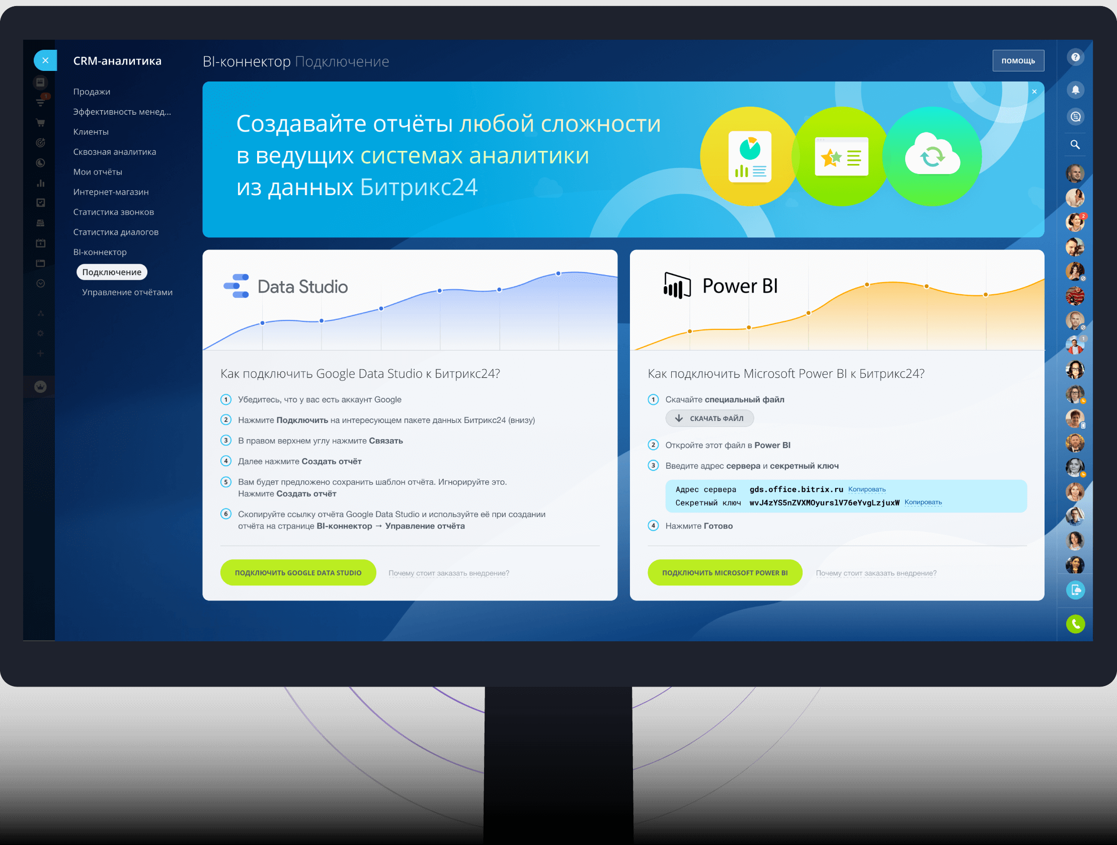 Передавайте данные из Битрикс24 в Power BI и Data Studio, чтобы отслеживать необходимые показатели. Сохраняйте получившиеся отчеты и настраивайте доступ для разных сотрудников.