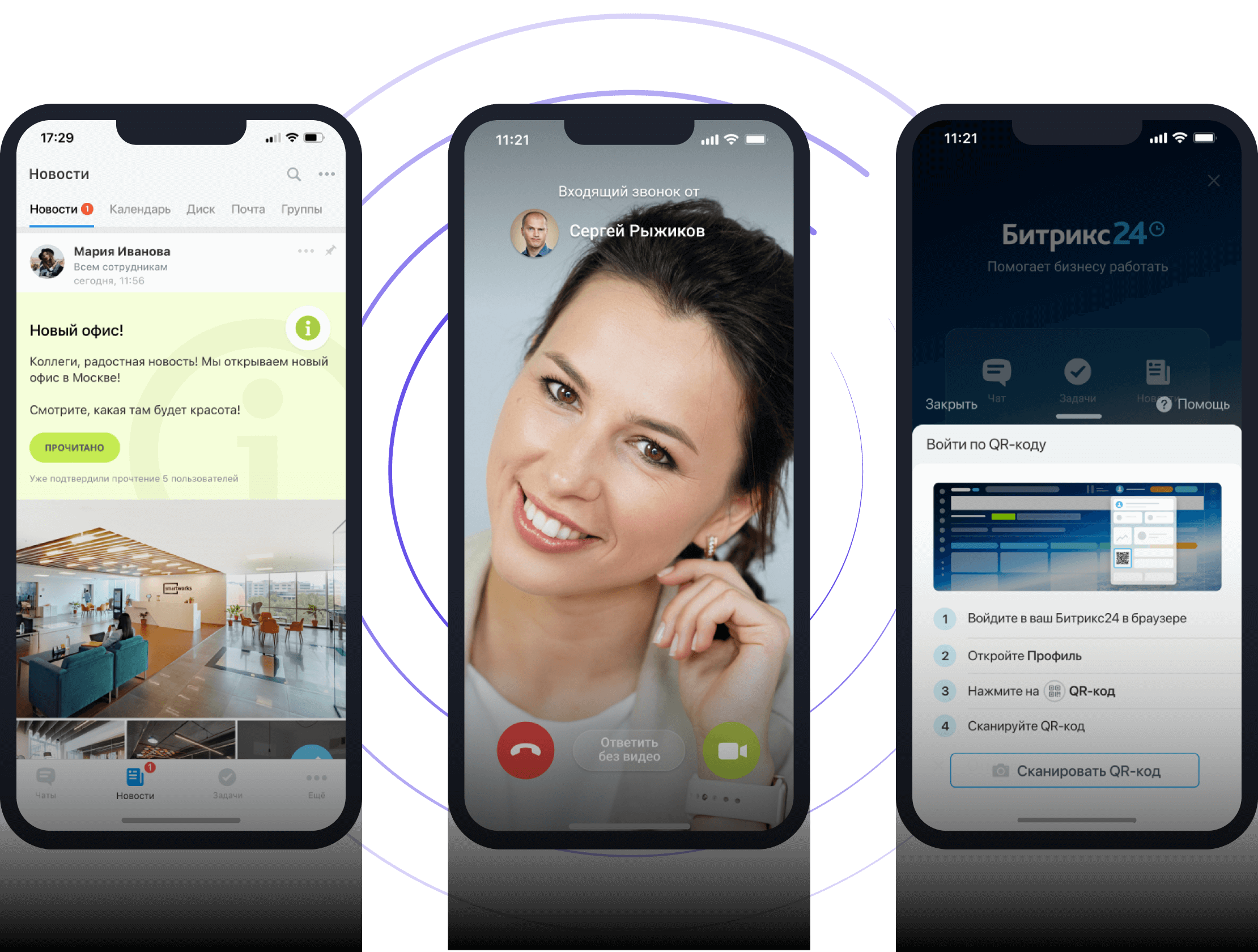 Больше не нужно собирать сотрудников по разным сервисам. В Битрикс24 все инструменты для совместной работы интегрированы между собой.