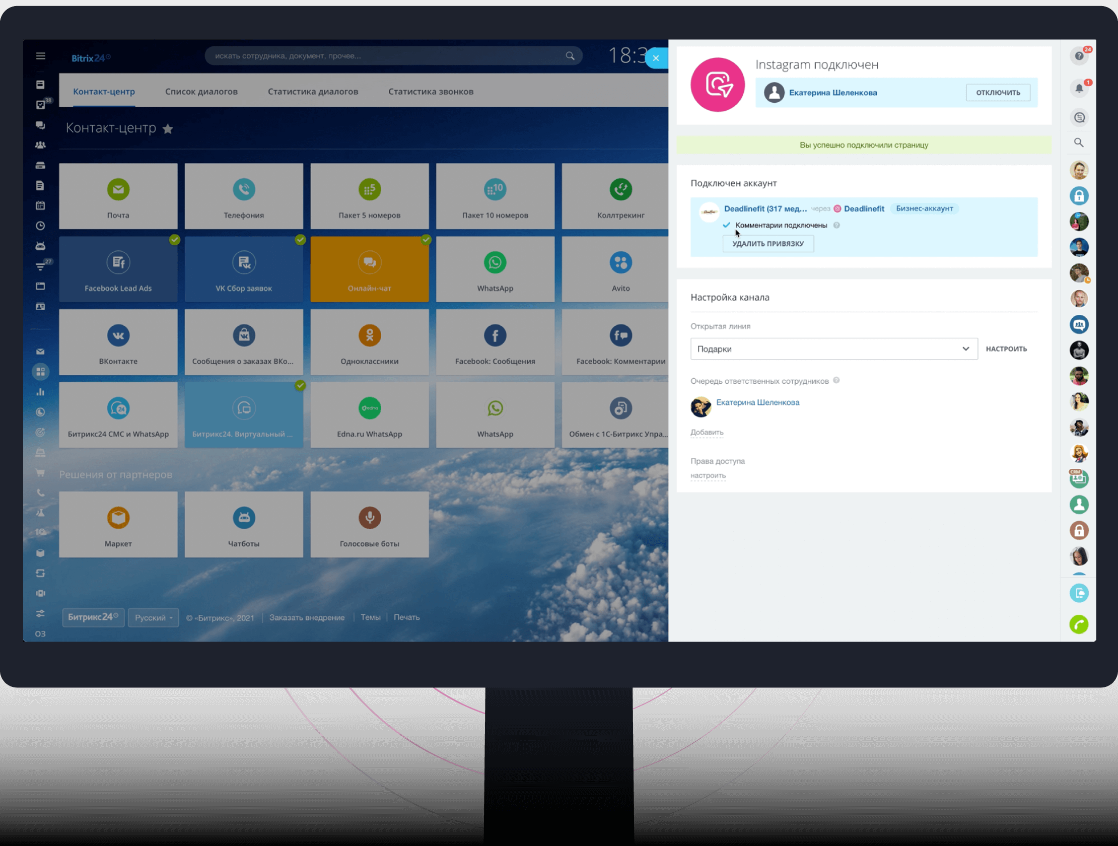 Как увеличить продажи в Instagram? Очень просто! Подключите его к Битрикс24.CRM. Все обращения клиентов в Direct будут автоматически направляться в CRM и передаваться менеджерам в работу. Вы не пропустите ни одну заявку. При этом сможете не просто консультировать, но и принимать оплату — прямо в чате!