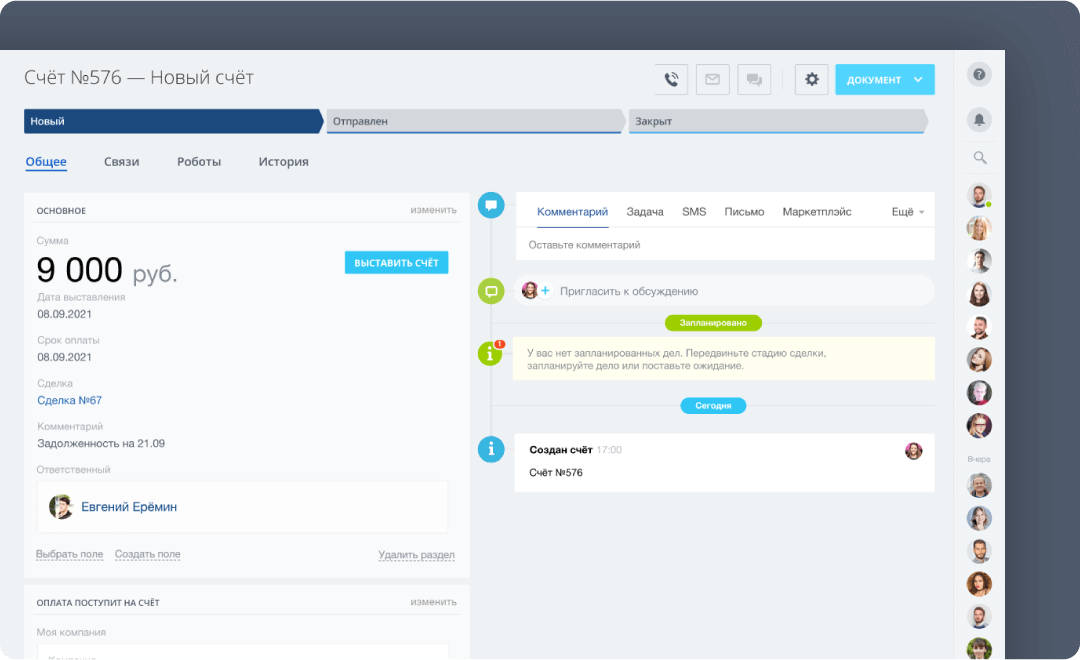 Создавайте товарные накладные, счета-фактуры, акты приемки и печатайте их прямо из CRM.