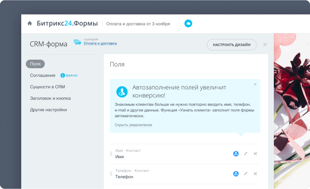 Анализ лидов и сделок, в том числе созданных через Телефонию, Открытые линии CRM-формы